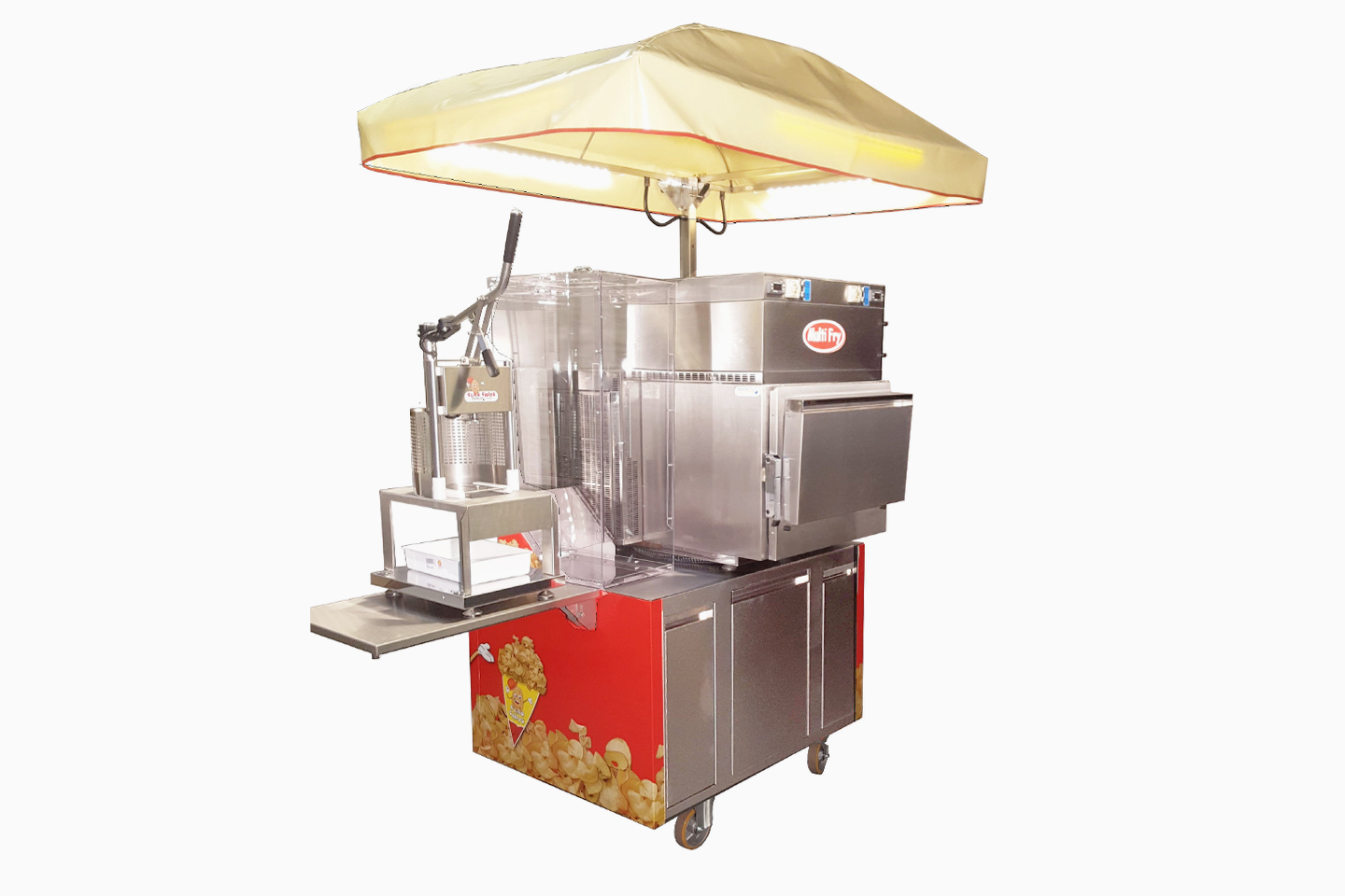 En la parte superior del carro, fabricado en acero inoxidable AISI 304, hay espacio para todo el equipo necesario para preparar sabrosos platos o deliciosos snakcs recién hechos.